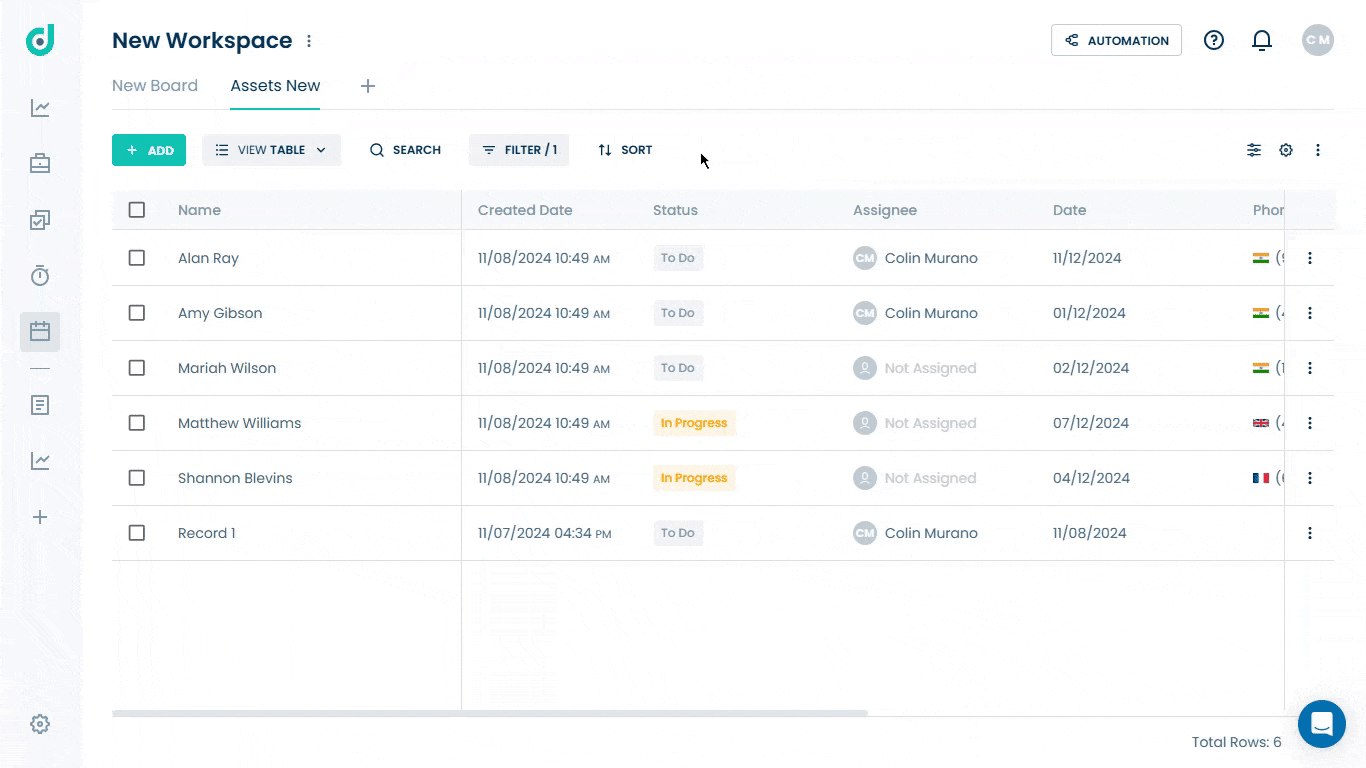 Note: The Assignee field is unique because you can filter records by it and select 'Me (dynamic)'. This way, each user will see only the records assigned to them.