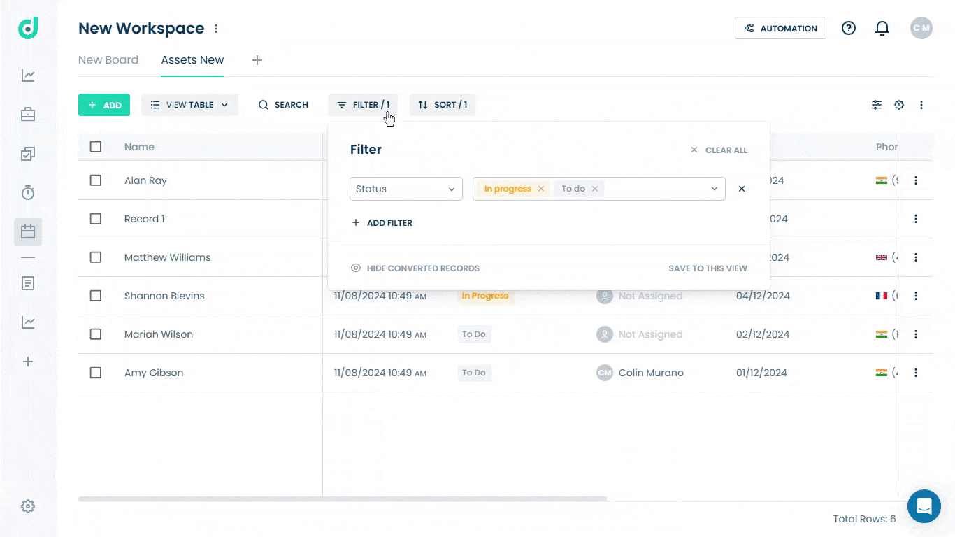 OneDeck allows you to streamline your workflow and enhance data analysis through advanced filtering and sorting techniques. This allows you to manage various businesses effectively. For example, you can filter records to show only 'Active' and ‘Assign’ to you, then sort by Date of last modified to prioritize recent interactions.